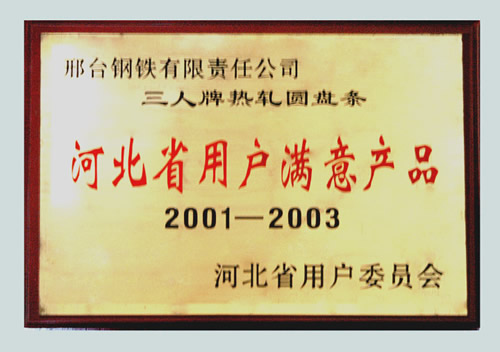 三人牌熱軋圓盤條被評為河北省用戶滿意產(chǎn)品