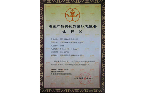 2009年2月,邢鋼榮獲“2008年河北省企業(yè)管理創(chuàng)新優(yōu)勝企業(yè)”榮譽稱號。