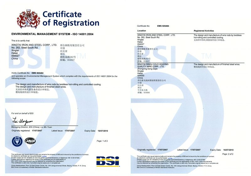 2007年8月24日,邢鋼獲ISO/TS 16949:2002認(rèn)證證書(國(guó)際汽車行業(yè)質(zhì)量管理體系認(rèn)證)。