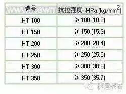 表2為灰鑄鐵的新的國家標準。該標準是以灰鑄鐵的抗拉強度作為分級依據(jù)的。由于灰鑄鐵對冷卻速率的敏感性(壁厚效應(yīng)),同一種牌號鑄鐵在不同鑄件壁厚條件下的實際強度有很大的差別(薄壁與厚壁之間在強度上的差別達50-80MPa)。