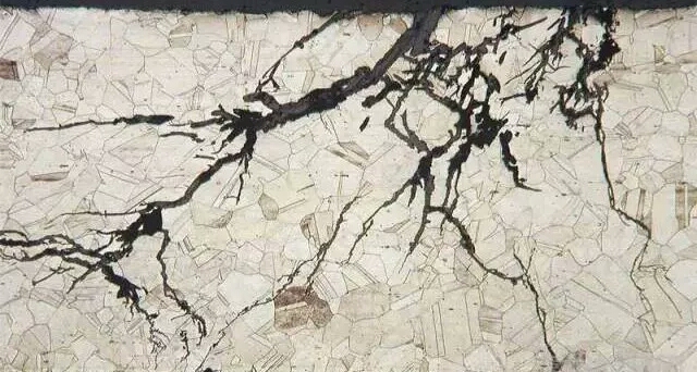應(yīng)力腐蝕開裂是奧氏體不銹鋼最常見的破壞形式。大家需要注意,應(yīng)力腐蝕開裂取決于兩方面主要因素:其一,必須有應(yīng)力,它可能是外加應(yīng)力,也可能是殘余應(yīng)力;其二,應(yīng)力腐蝕開裂敏感離子,比如鹵族元素離子,尤其以氯離子最為常見。應(yīng)用奧氏體不銹鋼的地方,時(shí)常不是使用其承受應(yīng)力的能力,因此應(yīng)該特別關(guān)注殘余應(yīng)力,因?yàn)樵诤新入x子的環(huán)境中,殘余應(yīng)力會造成其應(yīng)力腐蝕開裂。去殘余應(yīng)力的方法是去應(yīng)力退火。
