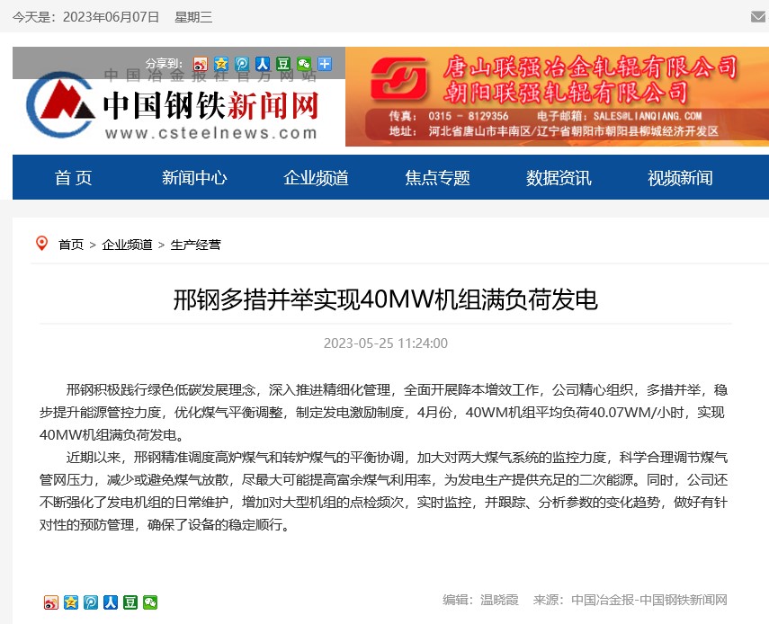 邢鋼多措并舉實現(xiàn)40MW機組滿負(fù)荷發(fā)電