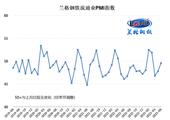 蘭格鋼鐵網(wǎng)統(tǒng)計(jì)發(fā)布的2023年6月份鋼鐵流通業(yè)PMI總指數(shù)為49.6%,比上月上升1.8個(gè)百分點(diǎn),在收縮區(qū)間內(nèi)繼續(xù)回升。從分類指數(shù)看,構(gòu)成鋼鐵流通業(yè)PMI的10個(gè)分類指數(shù)6升3降1平,其中銷售量、銷售價(jià)格、總訂單量、采購(gòu)成本、走勢(shì)判斷和采購(gòu)意愿6項(xiàng)指數(shù)上升,到貨速度、庫(kù)存水平和融資環(huán)境3項(xiàng)指數(shù)下降,企業(yè)雇員1項(xiàng)指數(shù)持平。