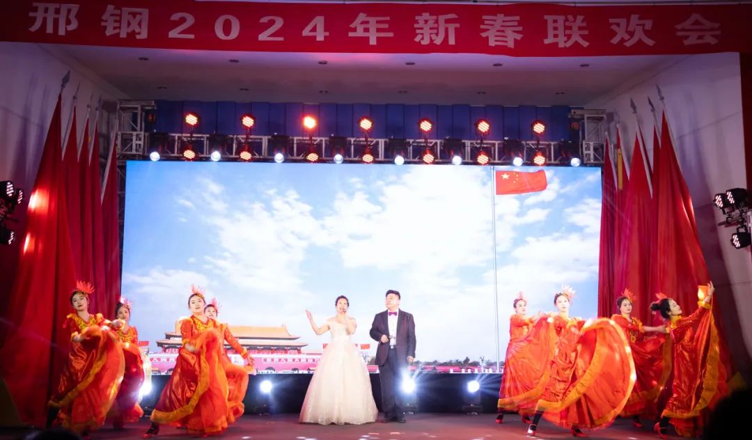 在聯(lián)歡會上,張育明董事長發(fā)表了熱情洋溢的致辭,代表公司、公司黨委向全體員工致以新春祝福。他說,2023年,在邢臺市委、市政府的指導(dǎo)、支持下,邢鋼完成股權(quán)重組,各二級單位以“保質(zhì)、提產(chǎn)、降本”為主線,精誠協(xié)作,創(chuàng)新管理,堅定實(shí)施“精品戰(zhàn)略”;廣大員工自覺踐行“誠信、擔(dān)當(dāng)、實(shí)干、創(chuàng)新、聚力、共贏”核心價值觀,愛崗敬業(yè),努力拼搏,為邢鋼健康運(yùn)營做出了積極貢獻(xiàn);邢鋼轉(zhuǎn)型升級搬遷改造項目順利奠基,項目建設(shè)穩(wěn)步推進(jìn),新邢鋼已從藍(lán)圖走向現(xiàn)實(shí)。2024年,要一手抓老廠區(qū)的安全生產(chǎn)和經(jīng)營,維護(hù)好邢鋼品牌;一手抓新邢鋼建設(shè),全力以赴推進(jìn)高標(biāo)準(zhǔn)、高質(zhì)量、高效率施工,確保一期項目按計劃竣工投產(chǎn),把新邢鋼建成“開放、智慧、綠色、靈動、融合”的世界一流特鋼標(biāo)桿企業(yè)。